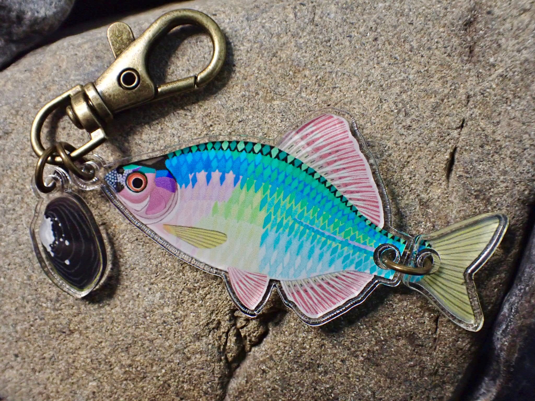 セットに含まれる小さなチャームは、その魚が生活する環境に関連した生き物をモチーフに。