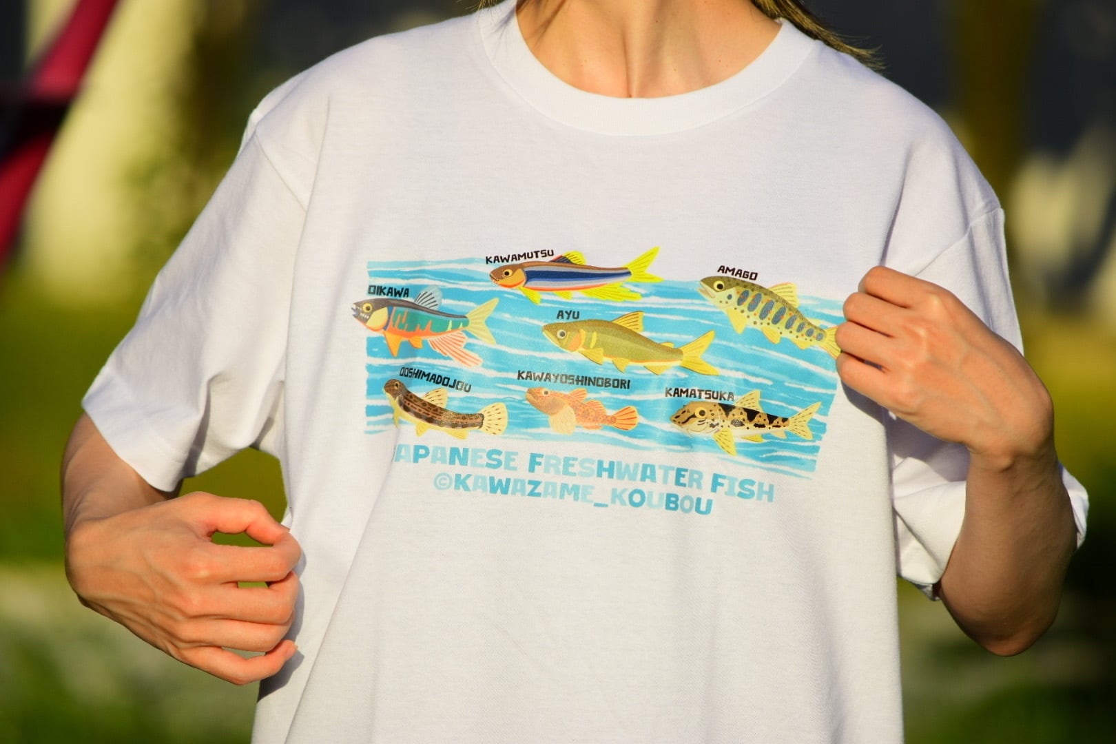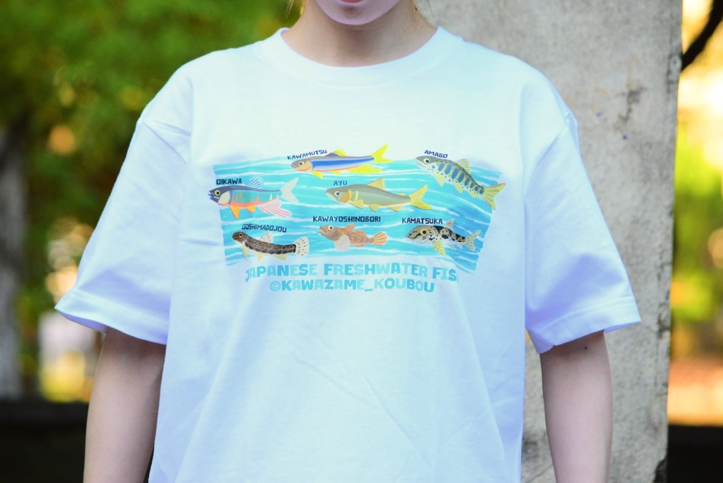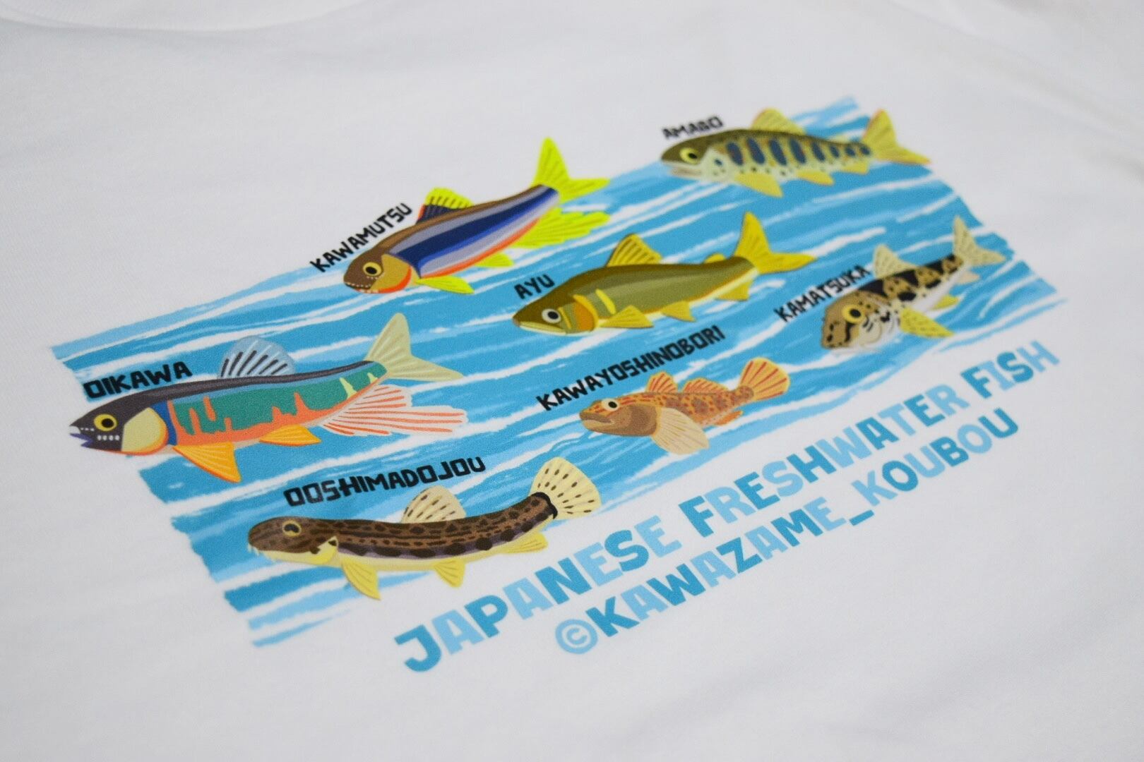 日本の川に暮らす身近で魅力的な淡水魚たちを一枚のTシャツに落とし込みました。